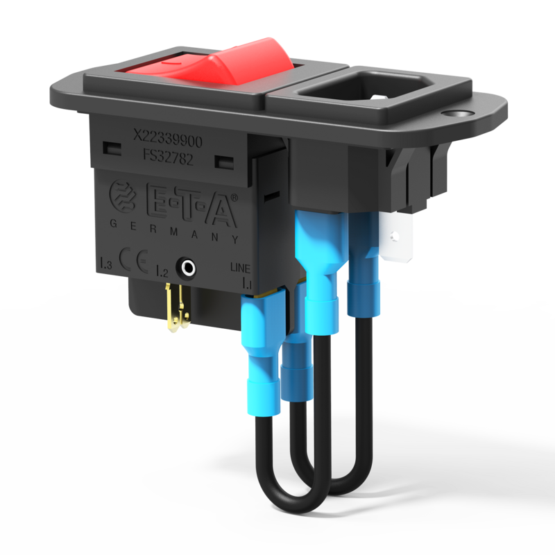 The space-saving X3130 power entry module combines three functions within a single component: A C14 appliance inlet, a rocker switch and resettable overcurrent protection. Thanks to screw mounting, the power entry module has a firm fit in the housing.